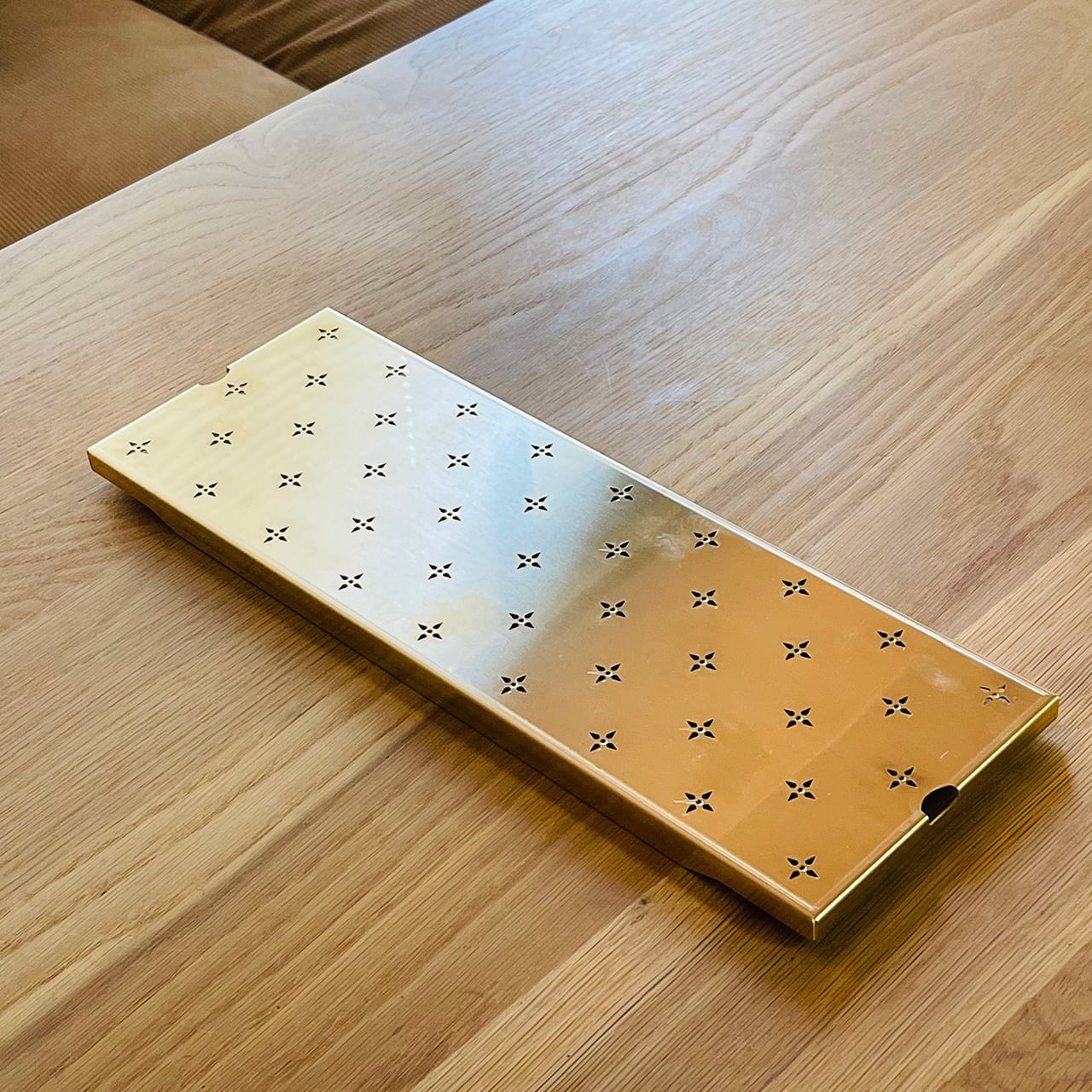 "アイアングリルテーブル(IGT)にセットし、スペースを埋めることができる真鍮製ハーフユニットのプレートです。