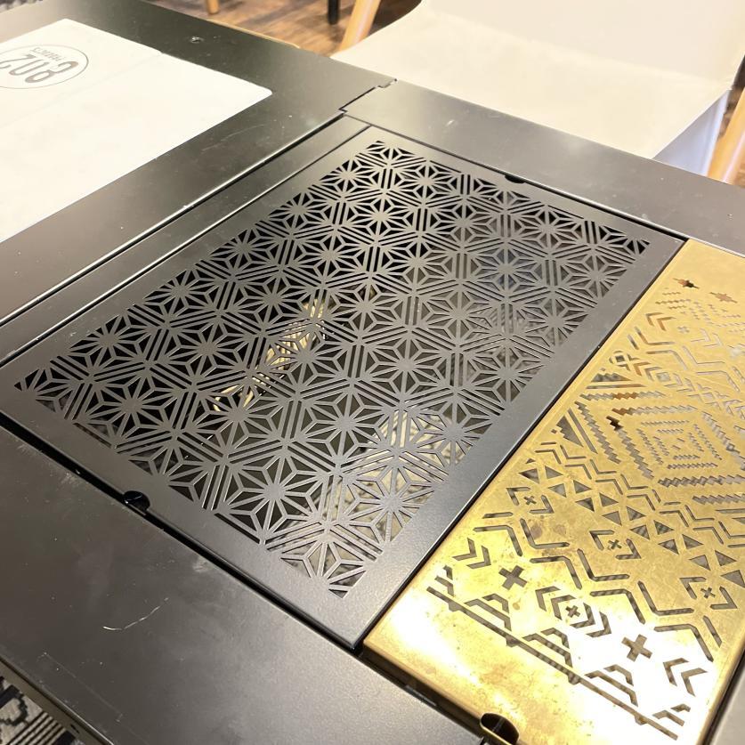 "アイアングリルテーブル(IGT)にセットし、スペースを埋めることができるアイアンをブラック塗装した1ユニットのプレートです。数種類あるデザインから、自分の好きな柄を組み合わせて自分スタイルで楽しめます。