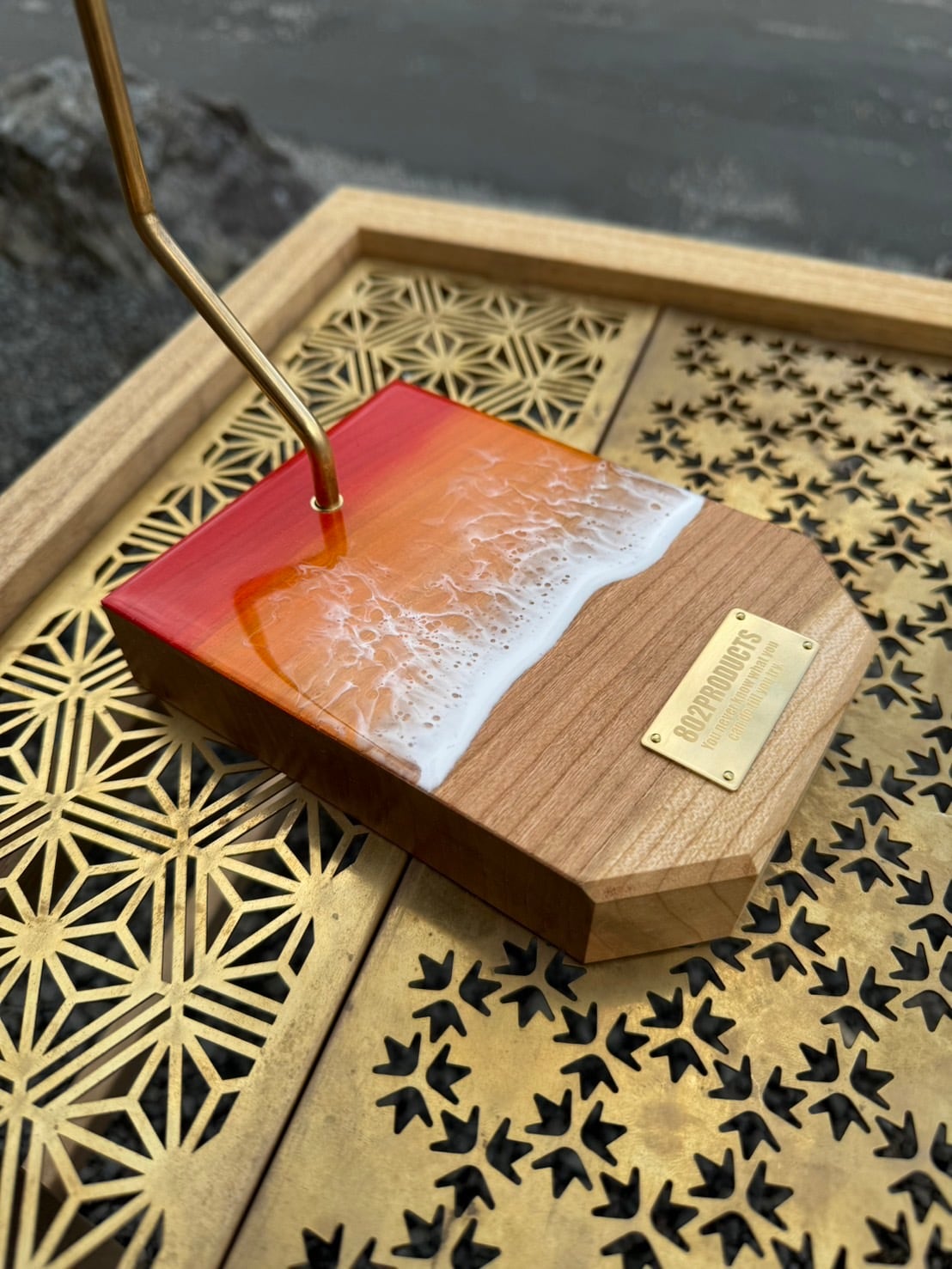 チェリー無垢材をベースに海に映る夕焼けをイメージして仕上げました。