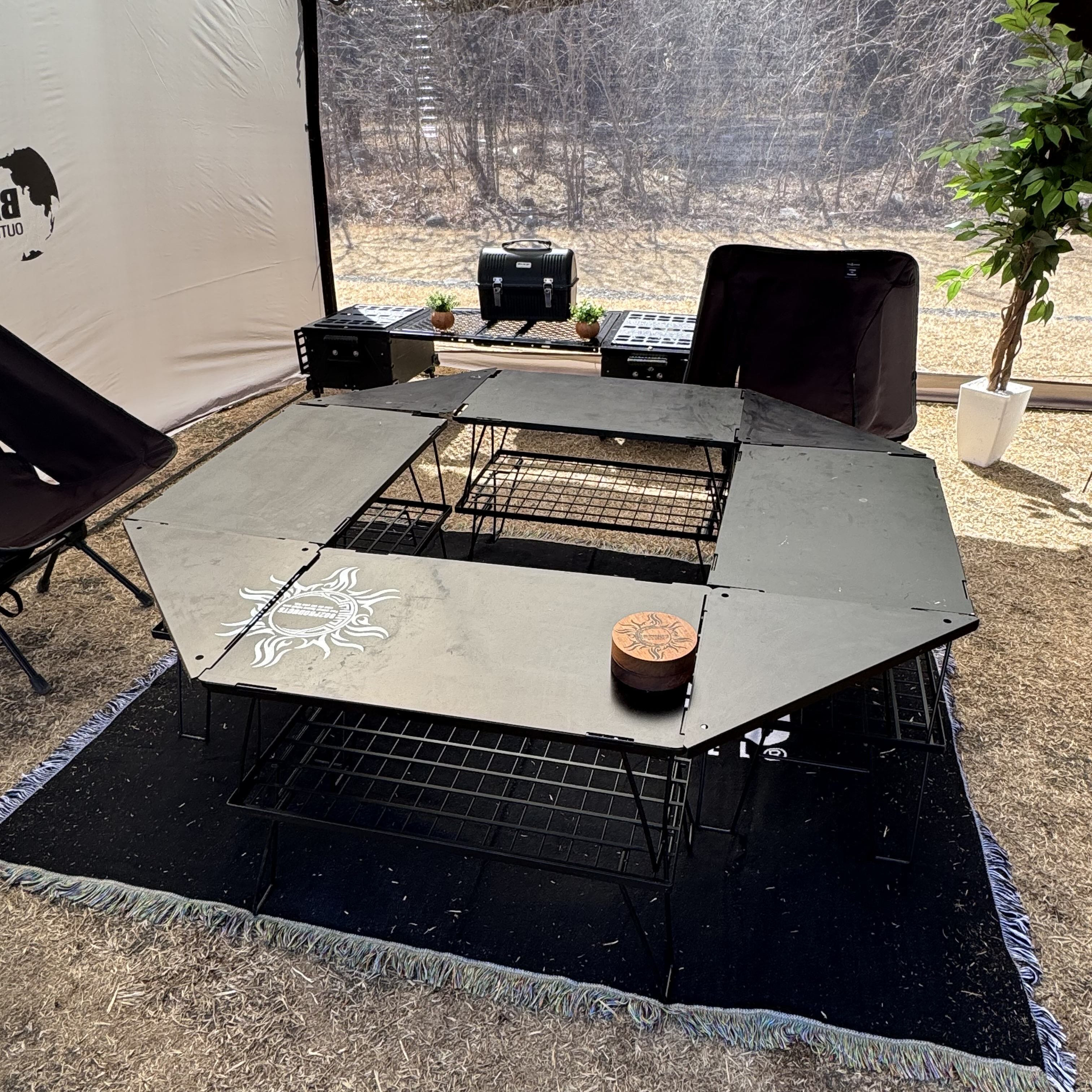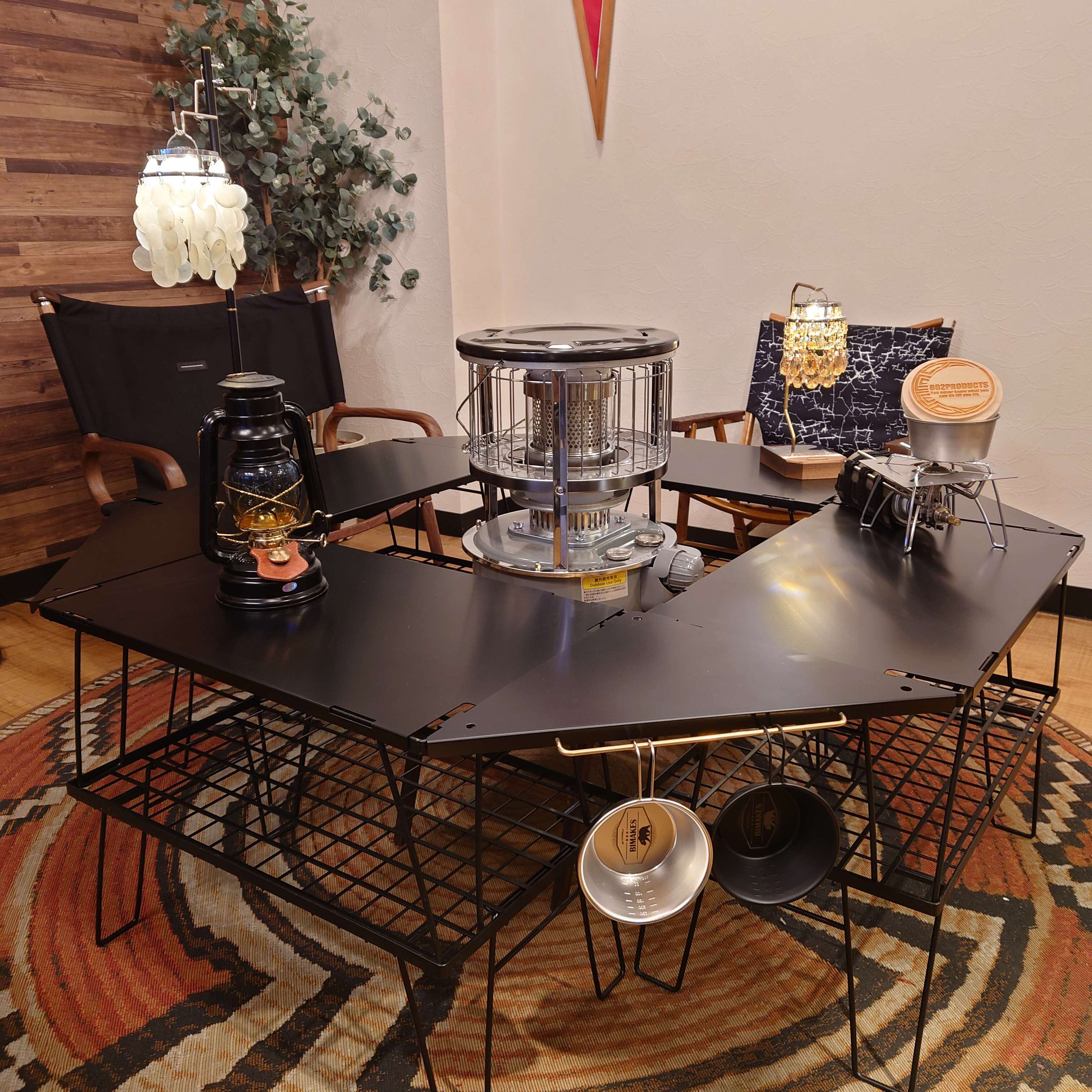 プラス4台のフィールドラックを足して2段にすると、チェアで囲む団欒スタイルに。