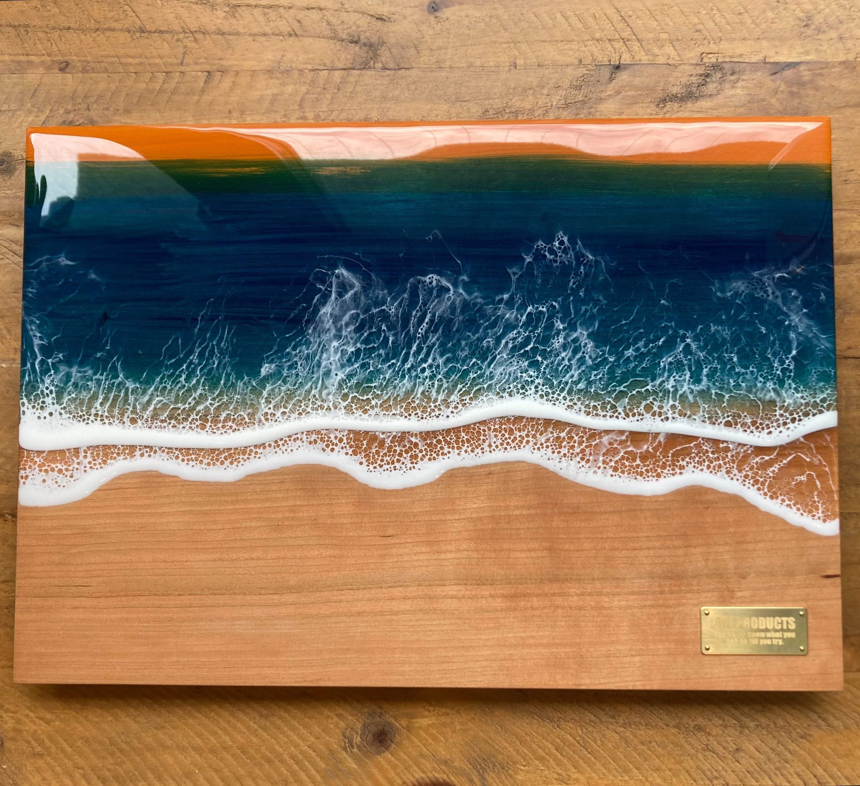 チェリー無垢材をベースに海に映る朝焼けをイメージして仕上げました。